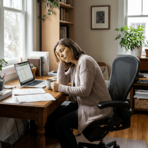create_a_photorealistic_image_of_a_midlife_woman_sitting_at_her_home_office_desk_looking_sleepy_7nemaxl11gh1zap2f3v2_0