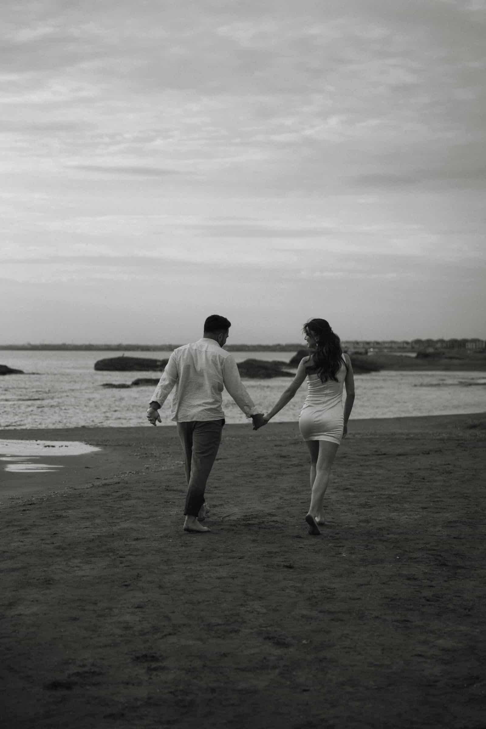 Love and connection for midlife women seeking balance and wellness A black-and-white photo of a couple holding hands on the beach, representing love, emotional wellness, and life balance for women in midlife.