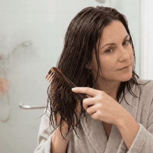create_a_photo_realistic_image_of_a_midlife_woman_with_wet_long_dark_brown_hair_using_a_comb_with_w_ytn6fi62hljhy2lwktp8_0